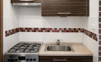Aneks kuchenny jest w pełni wyposażony: kuchenka gazowa z piekarnikiem, mikrofalówka, lodówka oraz pojemne szafki – wszystko gotowe do natychmiastowego użytkowania.