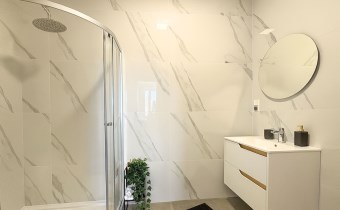 Łazienka nowa wyposażona w prysznic.