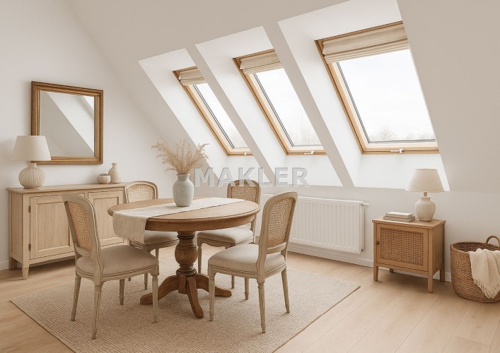 Mieszkanie umiejscowione jest na ostatnim, 3 piętrze bloku z 2011 roku,  z pięknymi oknami połaciowymi.