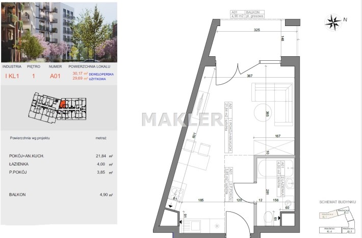 Przedstawiamy 1 pokojowe ( kawalerka ), mieszkanie o powierzchni 29,69m2 na 1 piętrze nowoczesnego bloku z windą i balkonem, oraz darmową siłownią i bawialnią w budynku!!