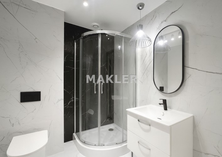 Nowoczesna łazienka – po generalnym remoncie, wykończona w wysokim standardzie.