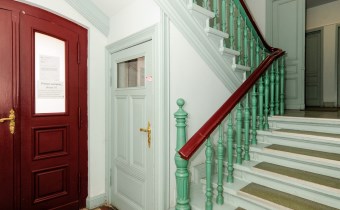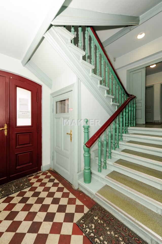 Kamienica odnowiona i zadbana, klatka schodowa po renowacji.