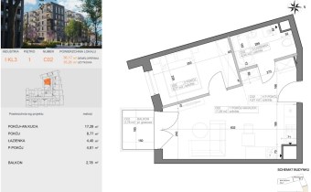 Przedstawiamy 2 pokojowe, mieszkanie o powierzchni 35,26m2 na 1 piętrze nowoczesnego bloku z windą i balkonem.