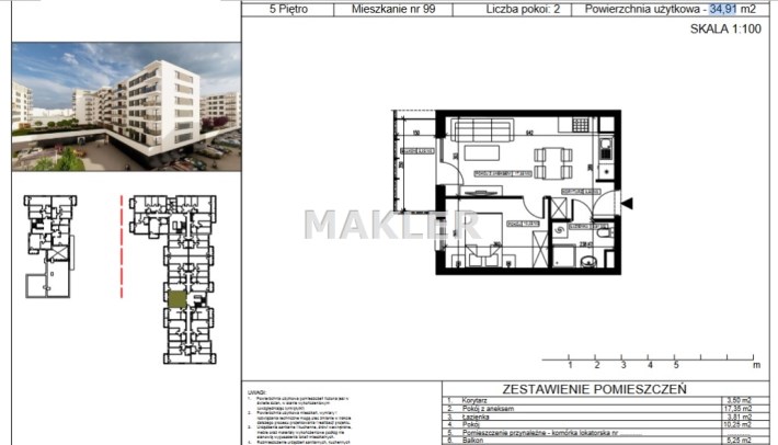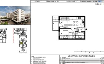 Przedstawiamy 2 pokojowe mieszkanie o powierzchni 34,91 m2 na 5 piętrze bloku z cichą windą.