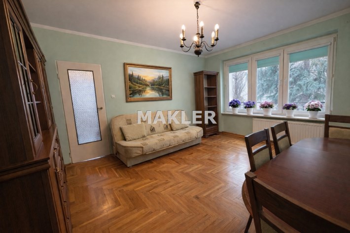 Mieszkanie doskonałe zarówno dla osób młodych jak i starszych ze względu na niskie bezpieczne piętro oraz komfortowy układ. W salonie znajduje się miejsce zarówno do wypoczynku jak i wspólnych posiłków przy stole.