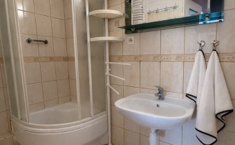 Łazienka wyposażona w kabinę prysznicową. Oddzielne WC w kaflach.