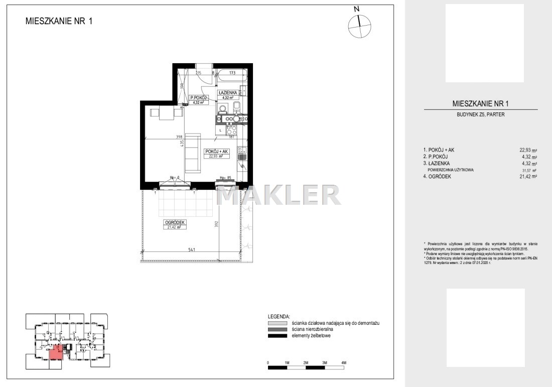 Przedstawiamy 1 pokojowe mieszkanie o powierzchni 31,57m2 na parterze bloku z własnym ogródkiem!!