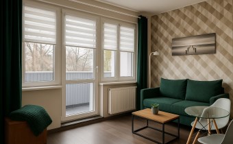 Mieszkanie po pracach modernizacyjnych, z jasną strefą dzienną i balkonem na poranną kawę.