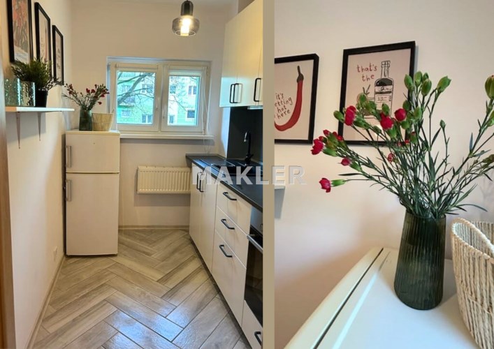 W cenie mieszkania pozostaje pralka, lodówka, kuchenka z piekarnikiem oraz meble widoczne na zdjęciach.