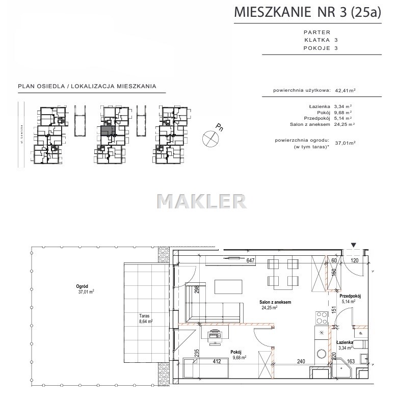 3 pokoje 48,00 m2 7 812,50 zł/m2