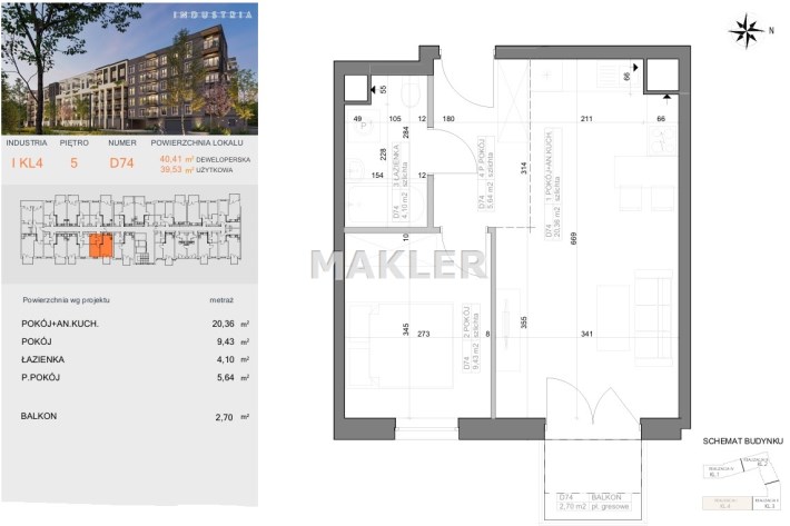 Przedstawiamy 2 pokojowe, mieszkanie o powierzchni 39,53m2 na 5 piętrze nowoczesnego bloku z własną siłownią i bawialnią dla mieszkańców!!