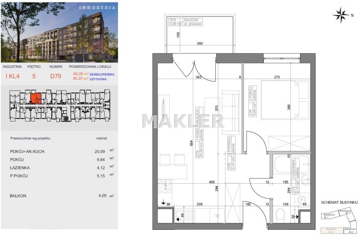 Powierzchnia użytkowa 39,20 m²