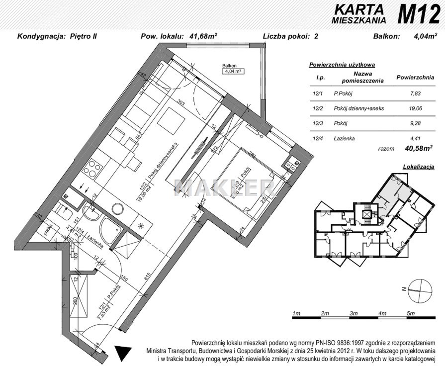 Przedstawiamy 2 pokojowe, mieszkanie o powierzchni 41,68m2 na 2 piętrze nowoczesnego bloku z windą!!