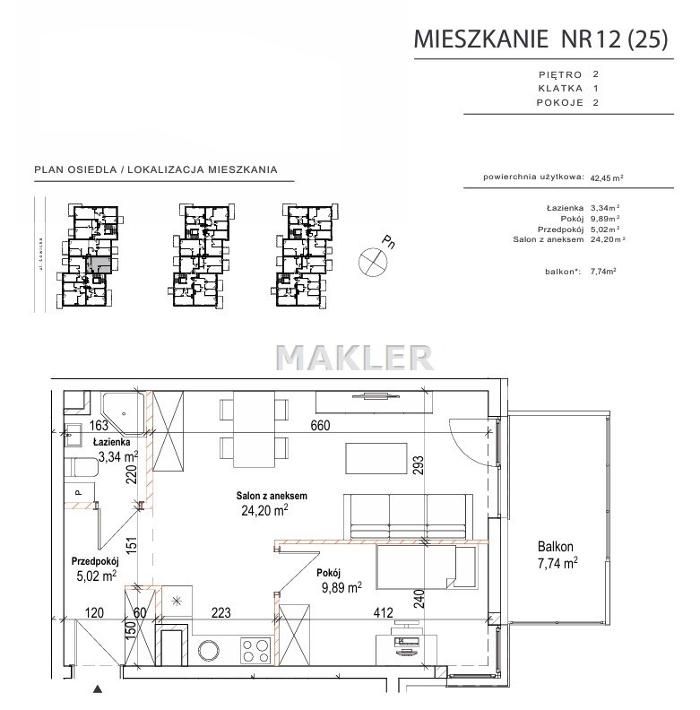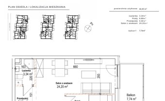 Przedstawiamy 2 pokojowe mieszkanie o powierzchni 42,45m2 na 2 piętrze kameralnego 2 piętrowego bloku z windą