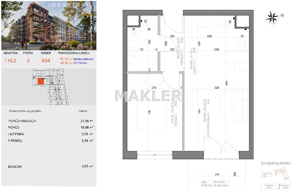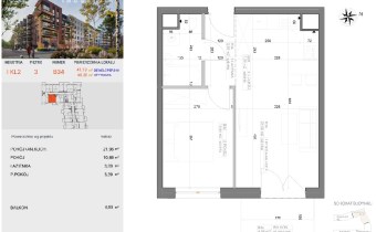 Przedstawiamy 2 pokojowe, mieszkanie o powierzchni 40,20m2 na 3 piętrze nowoczesnego bloku z windą i balkonem.
