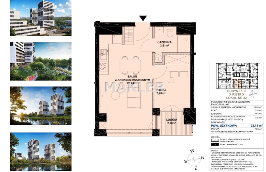 Przedstawiamy 2 pokojowe mieszkanie o powierzchni 32 m2 na 10 piętrze w bloku z cichą windą.