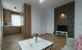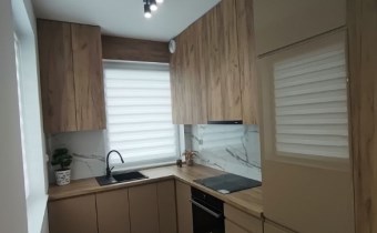 Wnętrze mieszkania zostało w pełni urządzone zarówno w nowe meble jak i sprzęty AGD. W salonie znajdziesz rozkładaną sofę, stół a w kuchni lodówko-zamrażarkę, piekarnik, okap. To idealne miejsce do spędzania czasu na co dzień. W sypialni natomiast możesz komfortowo odpocząć w łożu 140*200cm a ubrania schować w pojemnej szafie na wymiar.