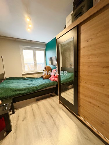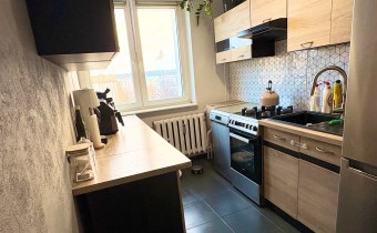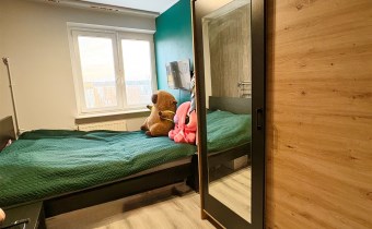 W kuchni zadbano zarówno o to by było miejsce do pracy dzięki czemu jest spory blat roboczy oraz aby swobodnie można było pomieścić sporo naczyń. Kolorystyka kuchni drewno-czerń co nadaje nowoczesnego charakteru. Sypialnie (jedna przechodnia) są zadbane i z powodzeniem będą służyły zarówno jako pokój dzieci lub jako miejsce do pracy czy wypoczynku.