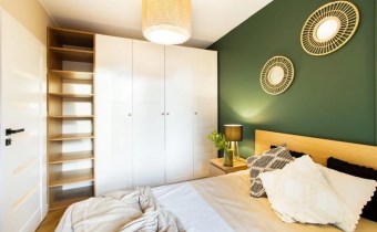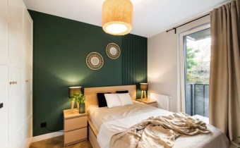 Mieszkanie znajduje się na pierwszym piętrze, składa się z salonu z aneksem kuchennym, sypialni, łazienki oraz dużego balkonu. Wyjście na balkon możliwe z salonu oraz z sypialni. Mieszkanie w pełni wyposażone (meble, agd).