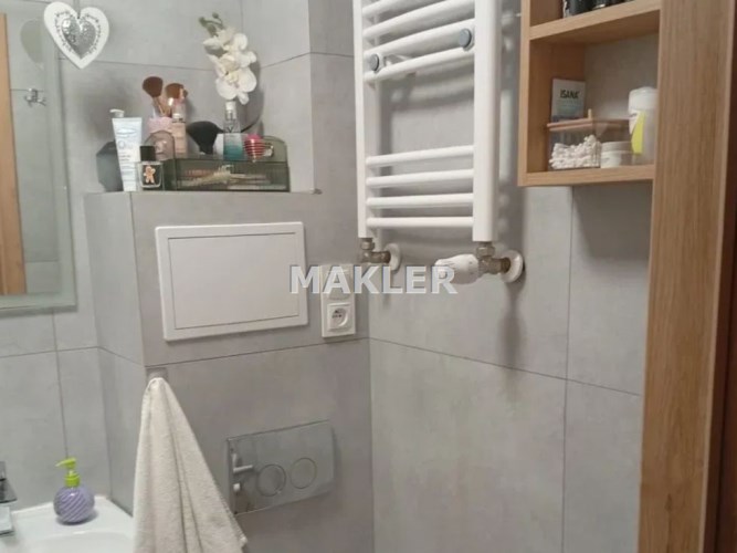 Mieszkanie jest po remoncie, gotowe do zamieszkania bez dodatkowych nakładów. Wnętrze jest jasne i ustawne, a układ pomieszczeń zapewnia komfort zarówno rodzinie, jak i parze czy osobom pracującym zdalnie. Duża sypialnia daje poczucie przestrzeni i swobody, a kuchnia wyposażona w sprzęt renomowanych marek Bosch i Samsung gwarantuje wygodę i jakość na lata.