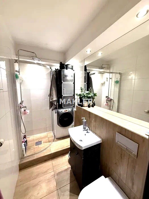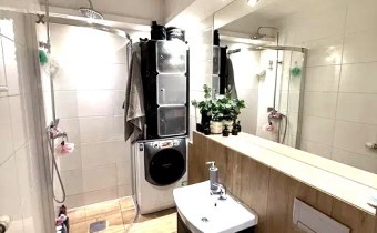 • łazienka z prysznicem oraz miejscem na pralkę,