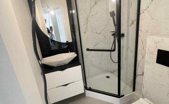 -łazienka w nowoczesnym desingnerskim wystroju w nowoczesnej glazurze,