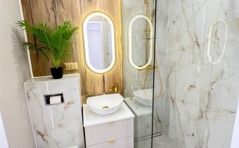 - nowoczesna łazienka z WC.