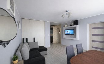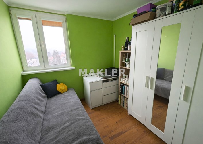 Usytuowanie na ostatnim piętrze zapewnia ciszę oraz brak sąsiadów nad głową, a dodatkowym atutem są przyjemne widoki na Grabinę.
