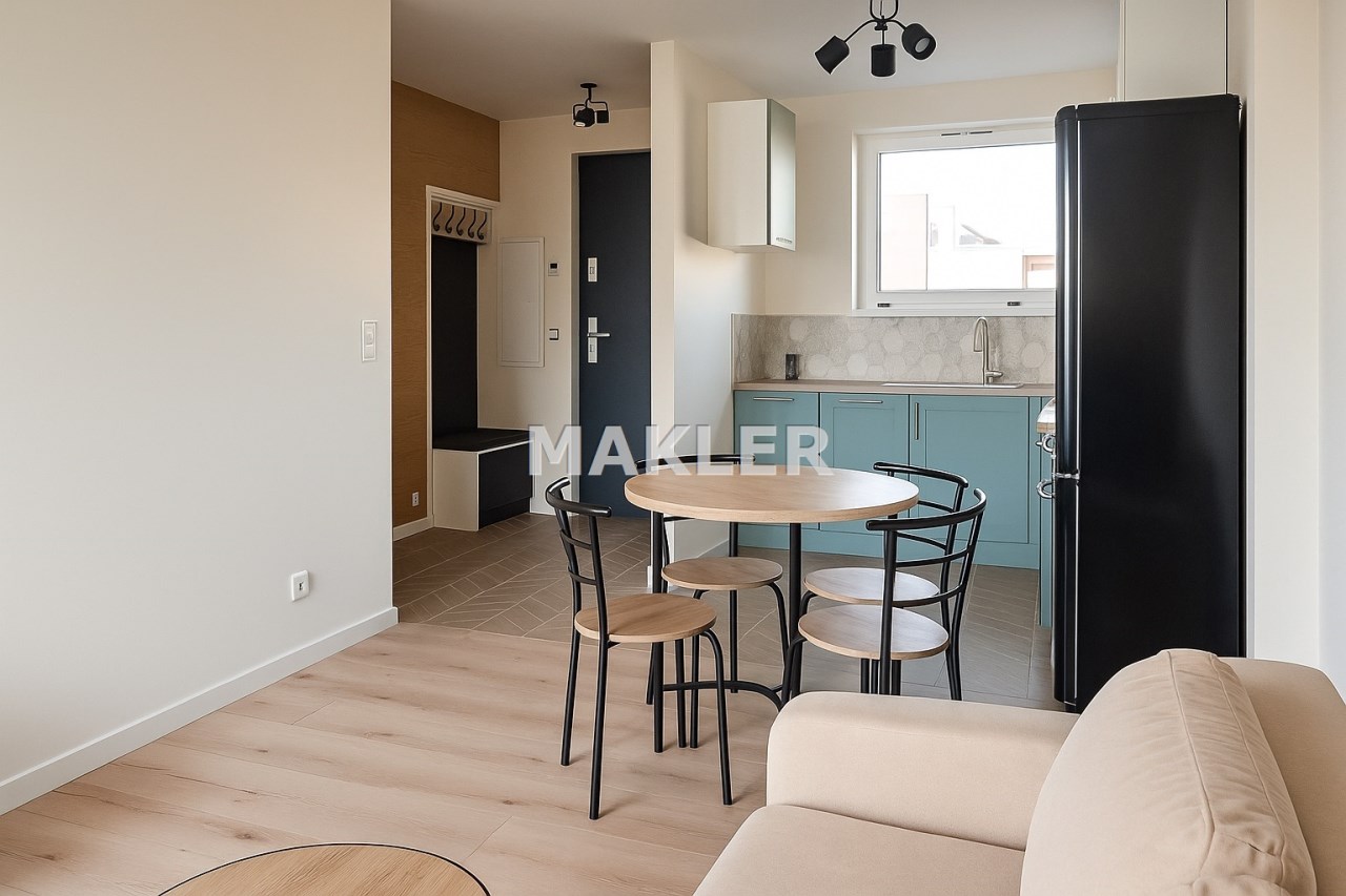 Makler Nieruchomości prezentuje ofertę sprzedaży nowoczesnego mieszkania o powierzchni 39 m², położonego na parterze w budynku z 2024 roku na Osiedlu Leśnym.