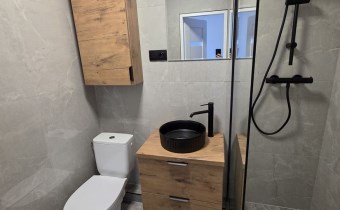W łazience zadbano o wygodny prysznic i nową armaturę.