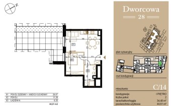 Przedstawiamy 2 pokojowe mieszkanie o powierzchni 44,61 m2 na 1 piętrze w bloku z cichą windą i ogromnym tarasem w samym centrum miasta Bydgoszczy.