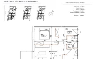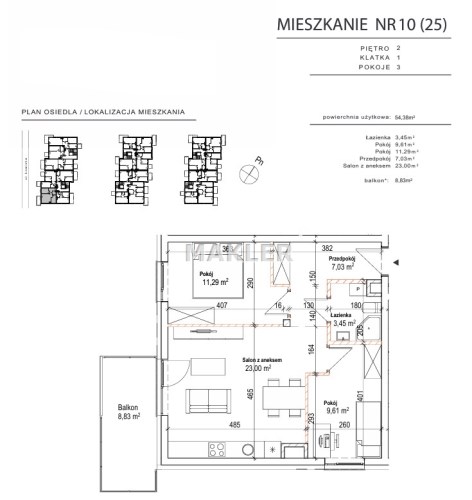 Przedstawiamy 2 pokojowe mieszkanie o powierzchni 54,38m2 na 2 piętrze kameralnego 2 piętrowego bloku z windą