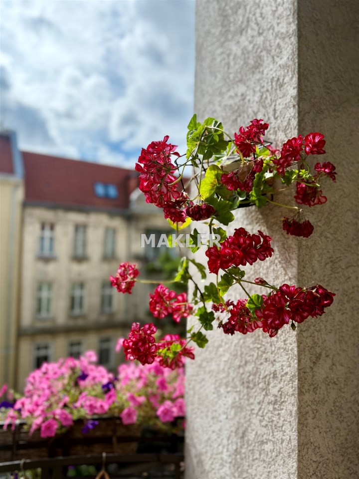 Mieszkanie jest dwustronne (ekspozycja wschód–zachód), dzięki czemu wnętrza są jasne i dobrze doświetlone przez cały dzień. Wysokość pomieszczeń ok. 3,30 m dodatkowo podkreśla przestronność i wyjątkowy klimat nieruchomości.