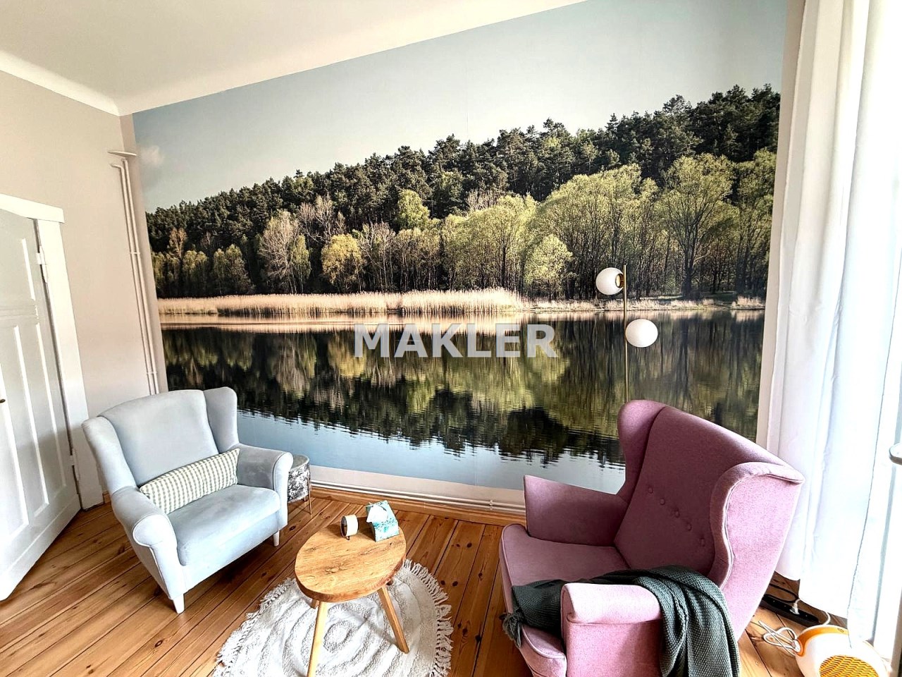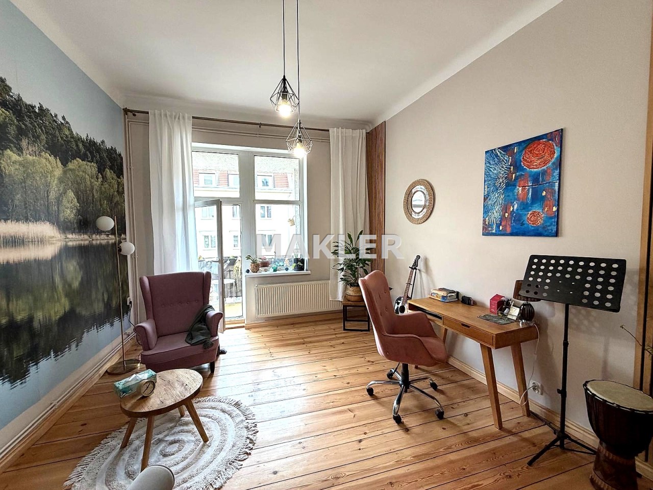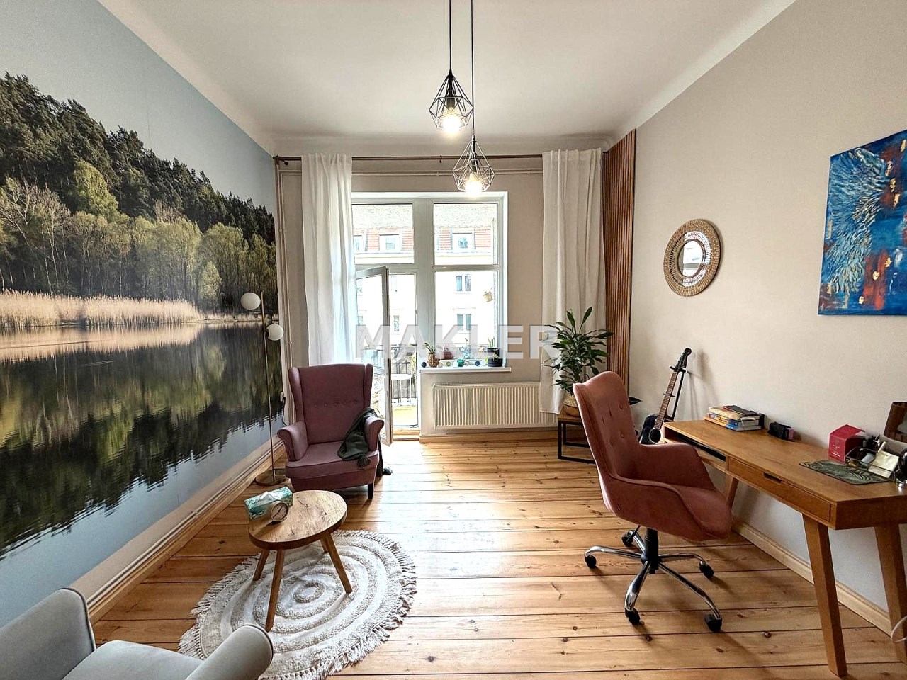 Na podłogach zachowane zostały piękne, drewniane deski, które idealnie wpisują się w charakter kamienicy.