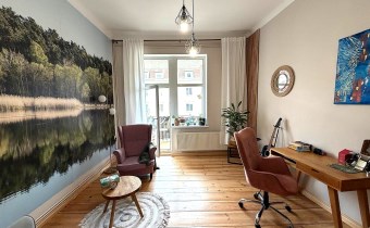 Lokal znajduje się na piętrze w pięknej, secesyjnej kamienicy z 1912 roku, która w najbliższym czasie przejdzie renowację elewacji.