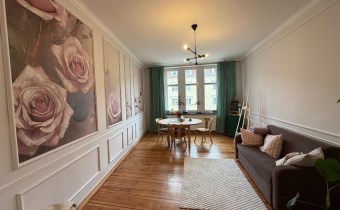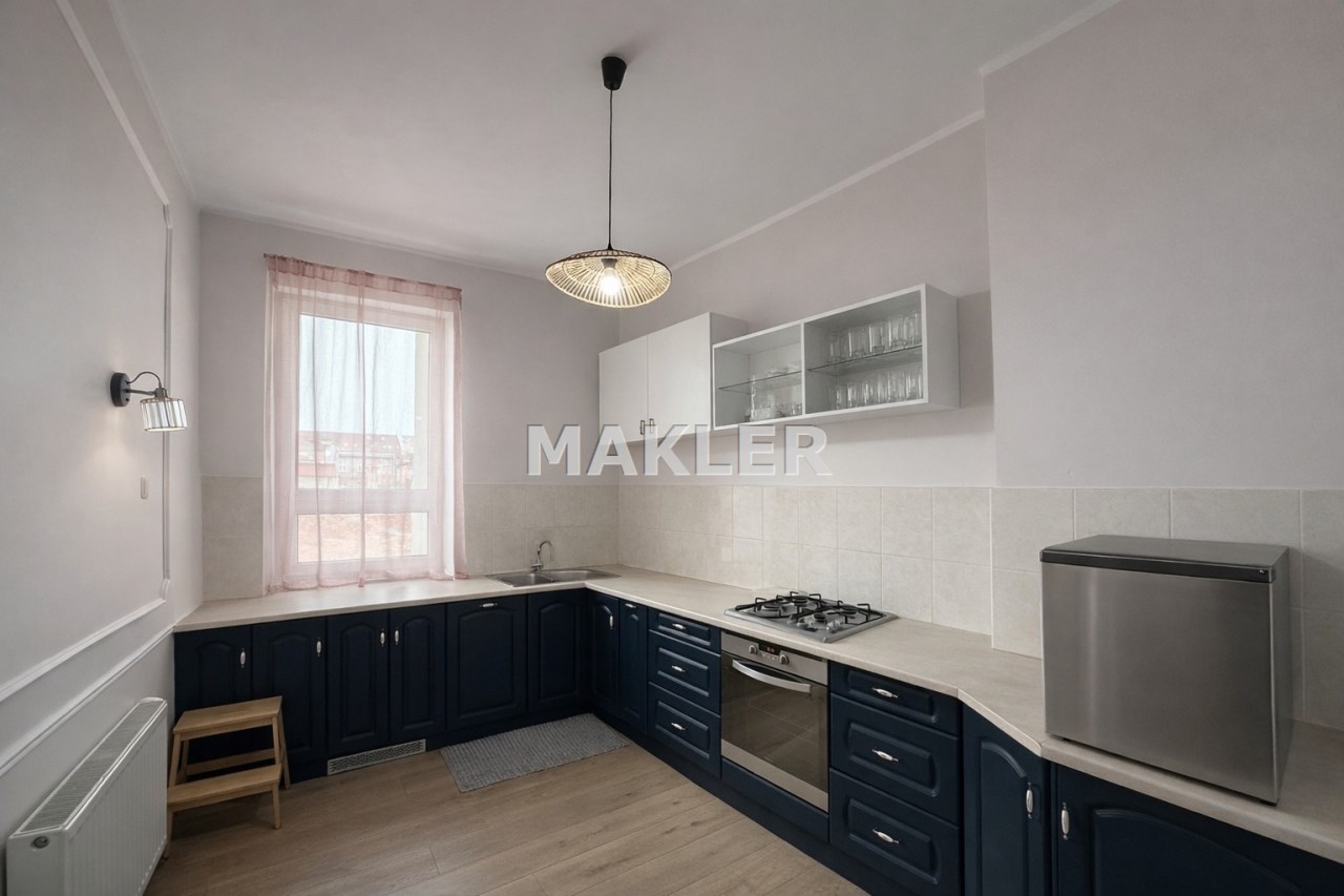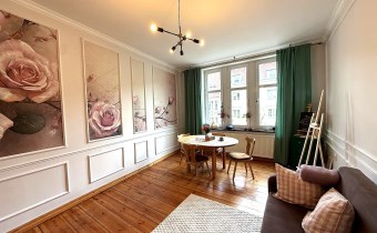 Mieszkanie jest dwustronne (ekspozycja wschód–zachód), dzięki czemu wnętrza są jasne i dobrze doświetlone przez cały dzień. Wysokość pomieszczeń ok. 3,30 m dodatkowo podkreśla przestronność i wyjątkowy klimat nieruchomości.