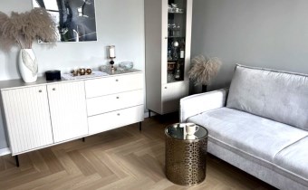 – elegancką podłogę w jodełkę w całym mieszkaniu
