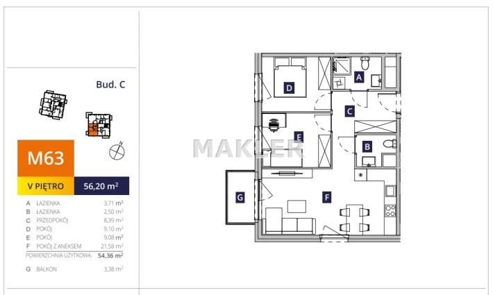 Przedstawiamy 3 pokojowe mieszkanie o powierzchni 54,42m2 na 5 piętrze bloku z cichą windą