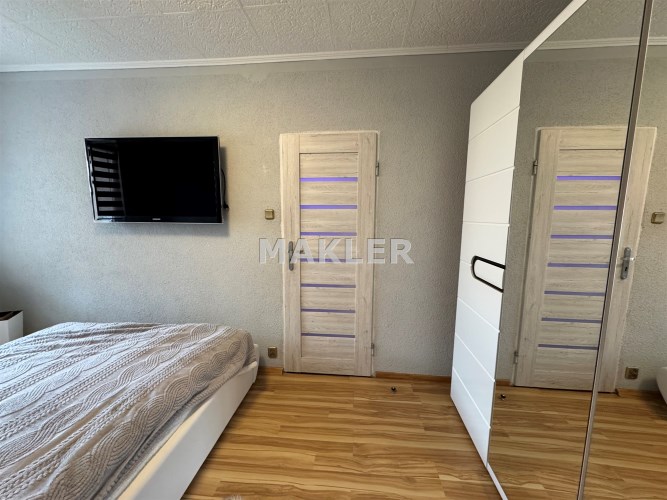 Mieszkanie jest jasne i ustawne, z dużymi możliwościami aranżacyjnymi. Wszystkie okna PCV, a układ północ–południe zapewnia optymalne doświetlenie pomieszczeń przez cały dzień.