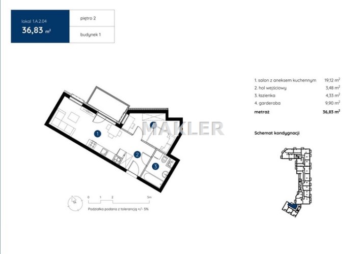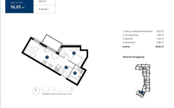 Przedstawiamy 1 pokojowe mieszkanie z garderobą o powierzchni 36,83 m2 na 2 piętrze w bloku z cichą windą w samym centrum miasta Bydgoszczy.