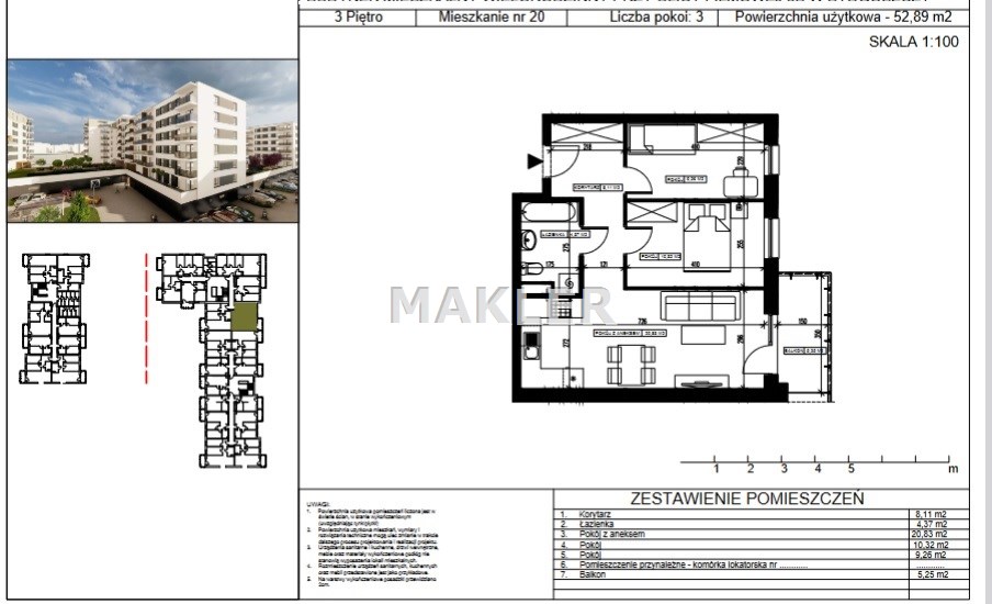 3 pokoje 56,23 m2 9 900,00 zł/m2