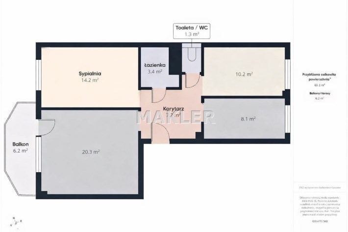 - powierzchnia: 65,28 m²