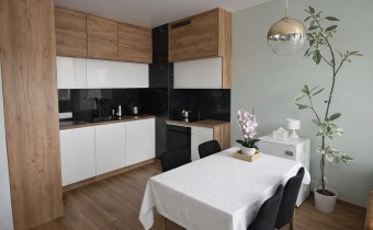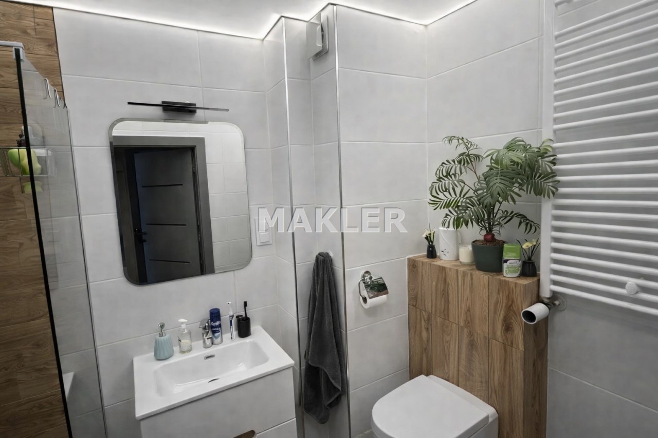 Mieszkanie wykończone w nowoczesnym, spójnym stylu, z dbałością o detale i funkcjonalność.