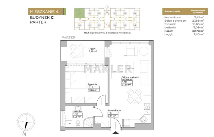Powierzchnia użytkowa 49,73 m²
