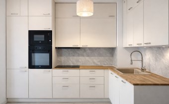 Aneks kuchenny jest w pełni wyposażony w sprzęt AGD, a całe mieszkanie zostało urządzone w nowoczesnym, funkcjonalnym stylu.