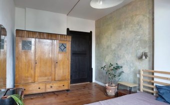 W sypialni oraz gabinecie odsłonięto kolejne warstwy farby, którymi przez ponad sto lat malowane były ściany – tworząc niezwykłą, historyczną fakturę wnętrza.