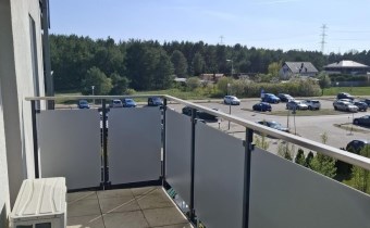 Dużym atutem nieruchomości jest przestronny balkon o powierzchni około 7 m², który stanowi idealne miejsce do odpoczynku, porannej kawy czy relaksu po pracy. Dodatkowo zastosowano tam szyby oklejone folią mleczną, które zapewniają większą prywatność przy zachowaniu dostępu do naturalnego światła. W drzwiach balkonowych zamontowano także moskitiery plisowane.