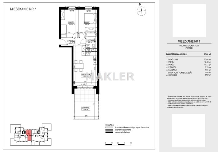 3 pokoje 59,83 m2 11 800,00 zł/m2