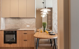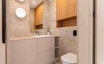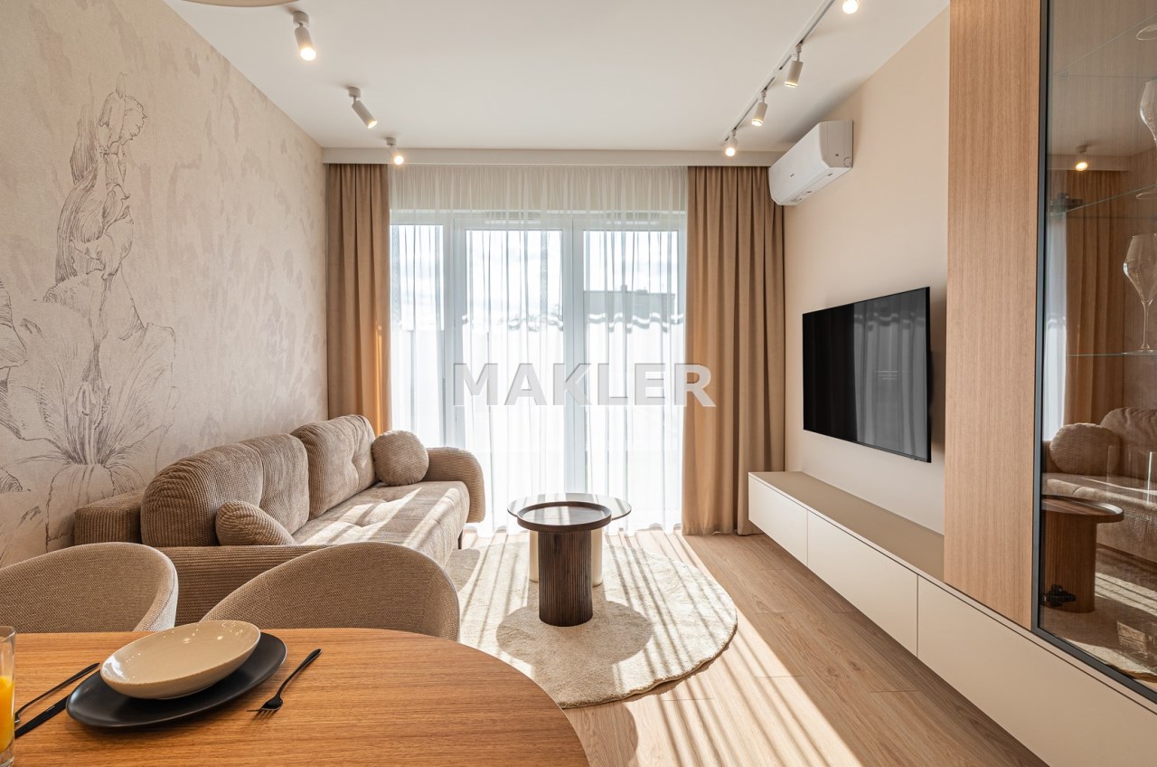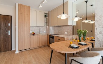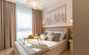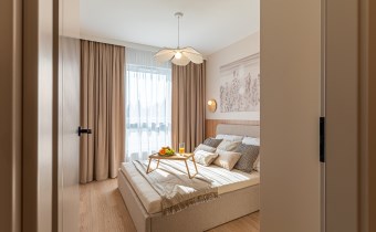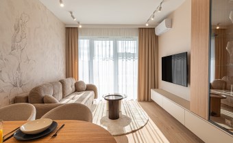 W mieszkaniu zainstalowano klimatyzację oraz nowoczesne oświetlenie. Wnętrze dopełniają starannie dobrane zasłony szyte na wymiar oraz stylowe dodatki. Zastosowano również drzwi wewnętrzne marki PORTA z wykończeniem odpornym na odciski palców.