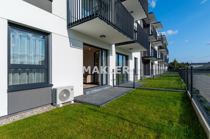 Mieszkanie składa się z salonu z otwartą kuchnią, sypialni, przedpokoju oraz łazienki. Dodatkowym atutem jest przynależny, ogrodzony ogródek – doskonała przestrzeń do relaksu.